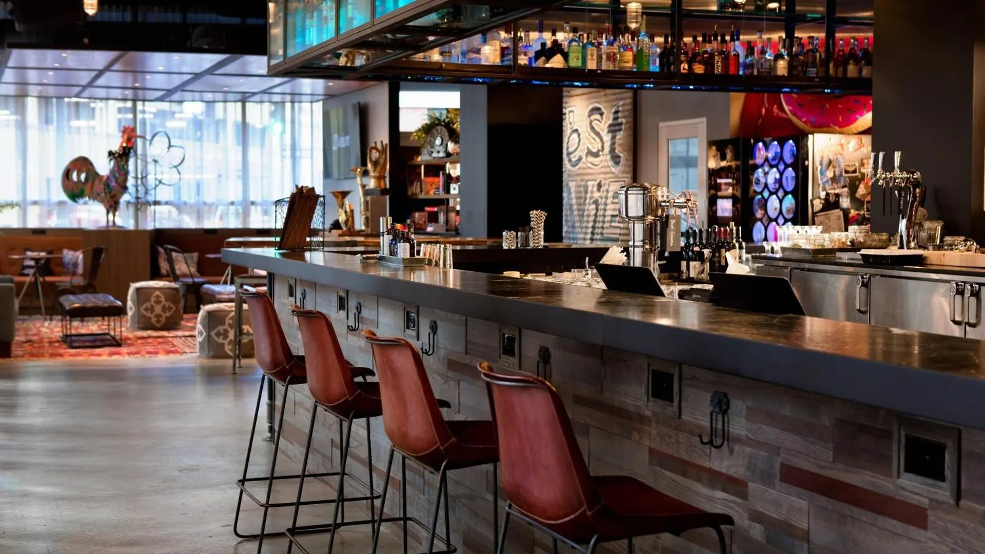 Les clients pourront étancher leur soif dans le bar ouvert 24h/24 avec leur boisson préférée. Hotel Moxy New Orleans Downtown/French Quarter Area se trouve juste à côté d'un restaurant un restaurant The Ruby Slipper Cafe.